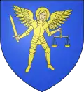 - D'azur au saint Michel Archange tenant de sa dextre une épée haute et de sa senestre une balance, le tout d’or, qui est de la commune de Reichstett du Bas-Rhin → voir illustration « armoiries avec un archange tenant une balance »