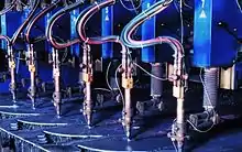 - Installation automatique équipée d’une ou plusieurs têtes de chalumeaux qui permet de réaliser des découpes de tôles unitaires ou en parallèle et de les reproduire indéfiniment.