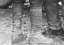 Bandes molletières entourant les mollets d'un soldat de la Première Guerre mondiale.