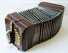 - (Musique) Instrument de musique apparenté à l’accordéon et au concertina.