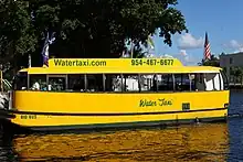- (Marine) Canot motorisé, privé, conduit par un pilote, destiné au transport payant de passagers et de leurs bagages, d'un port, d'un embarcadère à un autre.