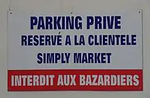 Panneau sur le parking d'un supermarché à Saint-Denis de La Réunion.