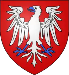 De gueules à l’aigle d’argent, becquée et membrée d’azur.