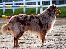 Un berger australien rouge merle.