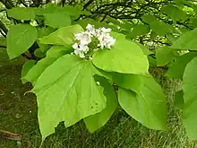 Feuilles et inflorescence du bignonier (Catalpa bignonioides).