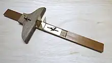 Un bilboquet de menuisier. (sens 11) - ()(Technique) Outil de chaisiers utilisé pour le traçage des mortaises sur les pièces de bois courbes.