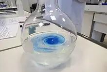 Une goutte de bleu de méthylène dans du glucose en solution.