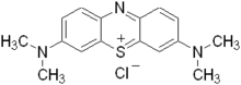 - (Chimie) Composé hétérocyclique à trois noyaux utilisé comme colorant des tissus vivants, qui teint le collagène en bleu. Il possède des propriétés antiseptiques. Il se présente sous forme de cristaux bleu de formule brute C16H18ClN3S.