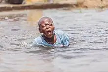 Fillette buvant la tasse dans une lagune au sud du Bénin (1).