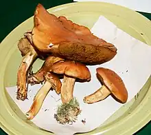 - (Mycologie) Espèce de champignons à tubes jaunes puis olivâtres, au chapeau convexe puis étalé et bosselé, ocre-brun, au pied sans anneau, concolore, et à chair blanchâtre à jaunâtre, bleuissant légèrement.