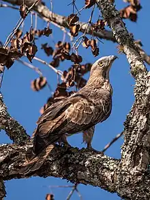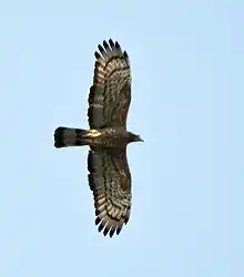 - (Ornithologie) Espèce d'oiseau rapace diurne (falconiforme) de la famille des accipitridés, une bondrée d'Asie, à long cou et longue queue, au plumage brun.