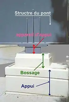 - (Architecture) Partie saillante d’une pile ou d’un tablier de pont sur laquelle vient s’appuyer l’appareil d'appui.