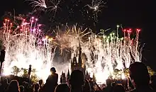 - (Pyrotechnie) Partie finale, la plus explosive et colorée, d’un feu d’artifice.
