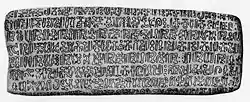 Tablette rongo-rongo de l’île de Pâques écrite en boustrophédon inversé.