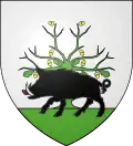 - D’argent à un chêne de sinople englanté d’or, posé sur une terrasse aussi de sinople et traversé au pied d’un sanglier de sable armé d’argent, le boutoir de gueules, qui est de Sedan → voir illustration « boutoir de gueules »