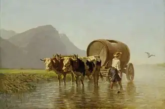 - Maître Etiévant était aux prises avec un officier qui avait dû attacher son cheval, faute de place dans la bouvée, à un anneau de fer, devant l’une des auges en pierre pratiquée dans la façade à l’intention, dit-on, des cavaliers français.— (Noël Amaudru, L’abbé de Watteville, Le Populaire, 24 avril 1929.)