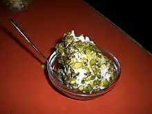 - (Courant) (Cuisine) Sorte de crème glacée faite à base de mastic, semblable au dondurma de la Turquie, et populaire dans les pays de culture arabe.