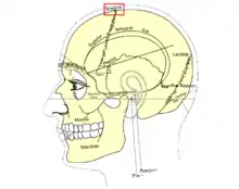 - (Anatomie) (Vieilli) Sommet du crâne qui relie la suture coronale (la suture entre os pariétal et l'os frontal) à la suture sagittale.