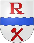- D’argent à la fasce ondée d’azur accompagnée en chef d’un R de gueules à la jambe barrée d’un S et en pointe d’un maillet et d’un burin du même passés en sautoir, qui est de la commune de Riviera du Tessin en Suisse → voir illustration « armoiries avec un burin »