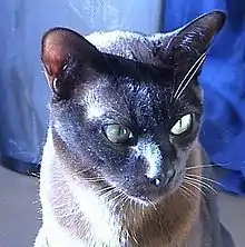 - Race de chat, créée aux États-Unis à partir d’un chat de Birmanie, à tête triangulaire, à queue moyenne, à poil court, et à robe sépia.