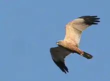 Un busard des roseaux en vol.