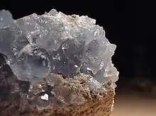 - (Nom commun 2) (1798) Mot créé par le minéralogiste et géologue allemand Abraham Gottlob Werner, inspiré du latin caelestis, « céleste », en allusion à la couleur de ses premiers échantillons.