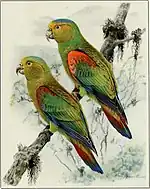 - (Ornithologie) Perruche du genre Hapalopsittaca, au plumage vert avec du rouge aux épaules et une calotte azur, vivant dans les forêts andines de Colombie.
