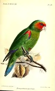 - Anglais : red-faced parrot (en)