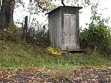 - (Construction) Toilettes extérieures en général situées au fond du jardin.