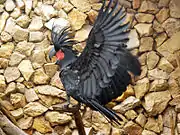 - (Ornithologie) Perroquet de très grande taille, à grande huppe, entièrement noir à l’exception de zones rouges déplumées sur les joues, vivant en Nouvelle-Guinée, Papouasie et dans une pointe nord-est de l’Australie.