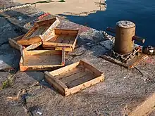 - (Usuel) Caisse en bois déroulé permettant le transport de fruits et légumes principalement.