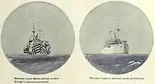 Camouflage d'un bateau par lignes géométriques. (sens 1)
