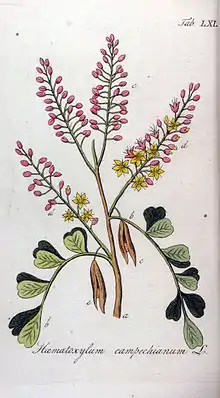 - Matière colorante extraite de cet arbre (voir hématine, hématoxyline).