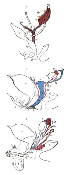 La proximité de la terminaison du canal de Wolff et du canal de Müller expliquerait l’abouchement de l’uretère dans ce dernier (vagin, utérus, utricule prostatique), à moins qu’il ne faille faire intervenir dans la genèse de ces ectopies des communications anormales entre canaux de Wolff et de Müller.