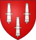 - De gueules à trois canons d’argent posés en pal, qui est d’Anlhiac de Dordogne → voir illustration « armoiries avec 3 canons »