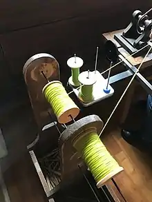 — (Bulletin de la Société d’encouragement pour l’industrie nationale, 25e année, numéro 259, janvier 1826, page 3)Il importe encore d’avoir le plus petit nombre possible de fils dans chaque musette et conséquemment peu de bobines sur la cantre.