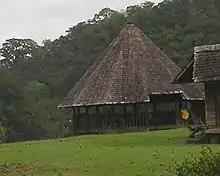 - (Construction) Grande case faite de branches et de feuillage, typique de certaines régions d’Amérique du Sud.