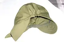 - Casquette en toile ayant une visière longue et un couvre-nuque divisé en deux.