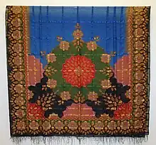 - (En particulier) Grande pièce de tissu, parfois en soie, qui était souvent fabriquée à Lyon du milieu du XIXe siècle jusqu'au début du XXe, avec généralement des motifs de cachemire.