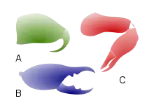 Trois sortes de chélicères.