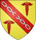 - D’or à la bande de gueules chargée d’une chaîne brisée d’argent et accompagnée de deux caducées de gueules, qui est de la commune de Giribiller de Meurthe-et-Moselle → voir illustration « armoiries avec une chaîne brisée »