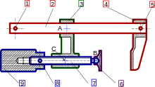 Mise en évidence des différentes pièces d'un serre-joint, formant une chaîne cinématique.