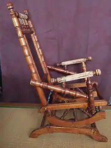 - (Canada) (Mobilier) Chaise ou fauteuil qui comporte sous les pieds des pièces de bois courbes, qui permettent le balancement d’avant en arrière. D’autres modèles utilisent un mécanisme de suspension qui élimine tout mouvement au sol, évitant ainsi d’écraser pieds et queues d’animaux familiers.