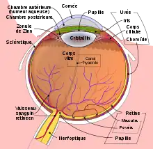 - le corps ciliaire et le cristallin