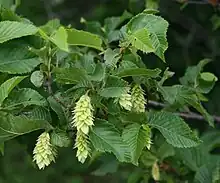 - (Botanique) Arbre indigène des montagnes d’Europe centrale et méditerranéenne, au tronc crevassé et aux fruits ressemblant à ceux du houblon.