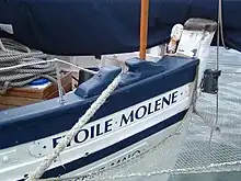 Chaumard (1) sur la lisse d’un voilier en bois.