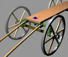 - (Technique) Articulation, pivot central vertical qui lie l’essieu d’une voiture, d’un affût avec la flèche ou avec les brancards.