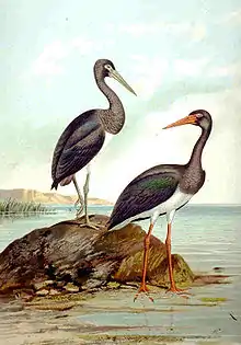 - (Ornithologie) Cigogne au plumage presque totalement noir à reflets verts et pourpres.