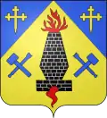 - D’or au haut fourneau de sable maçonné d’argent, flambant de gueules et à la coulée du même, accompagné à dextre d’une massette et d’un ciseau de sculpteur d'azur formant un sautoir, et à senestre du même sautoir contourné ; mi-vêtu d’azur chargé de deux croisettes recroisetées au pied fiché d’or, qui est de la commune d’Abainville de la Meuse → voir illustration « armoiries avec 2 ciseaux de sculpteur »