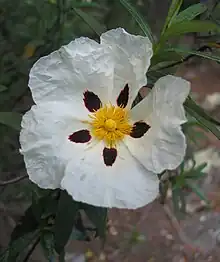 - (Botanique) Arbuste des régions méditerranéennes aux feuilles opposées, sessiles, linéaires à lancéolées, et aux grandes fleurs blanches, à la base tachée de pourpre.